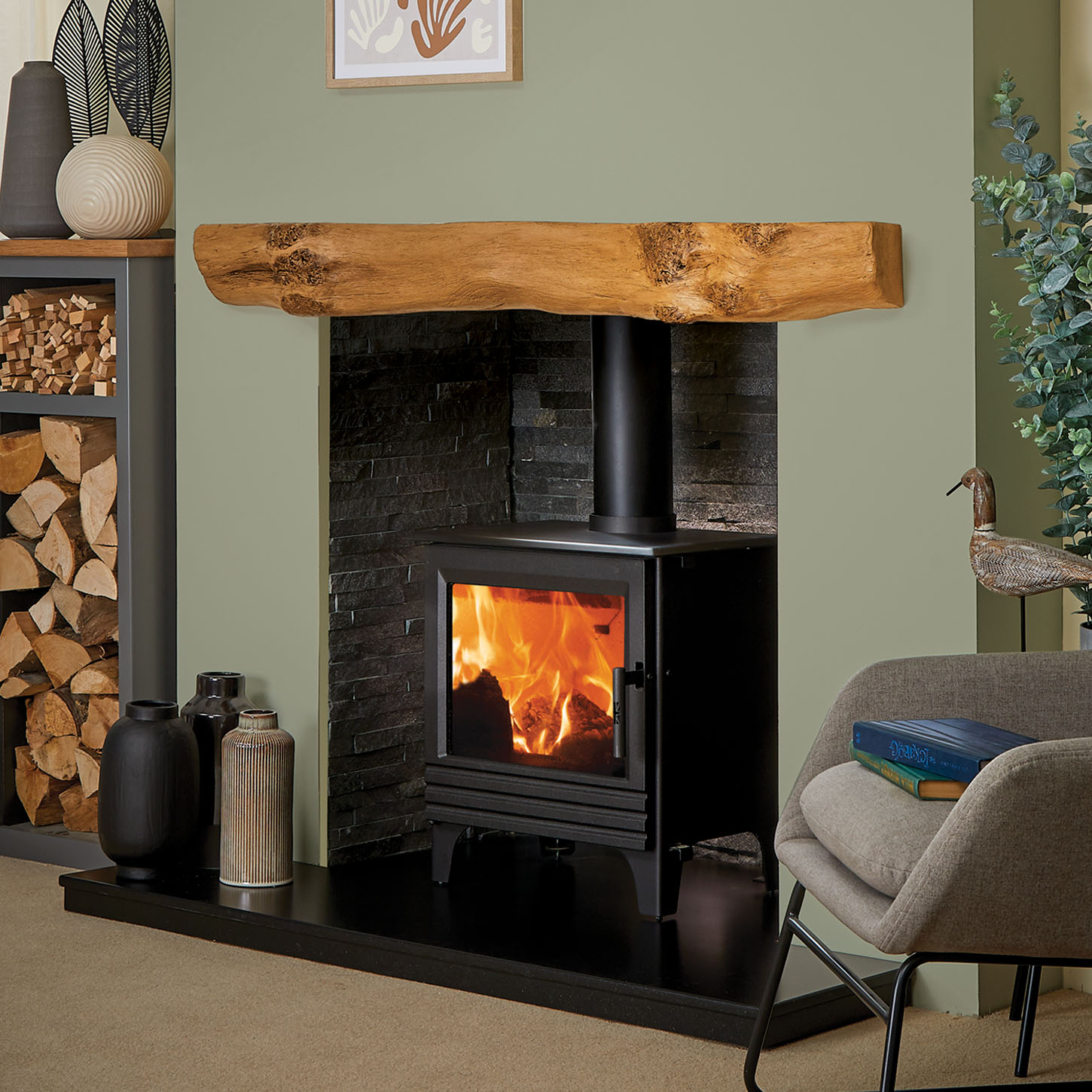 This product is moulded using a high-density mineral composite material that can endure extreme exposure to heat and flames and will not ignite. This fire-resistance allows the FocusCast products to be positioned closer to a stove than a timber product.